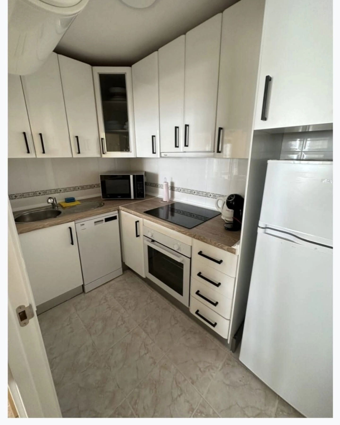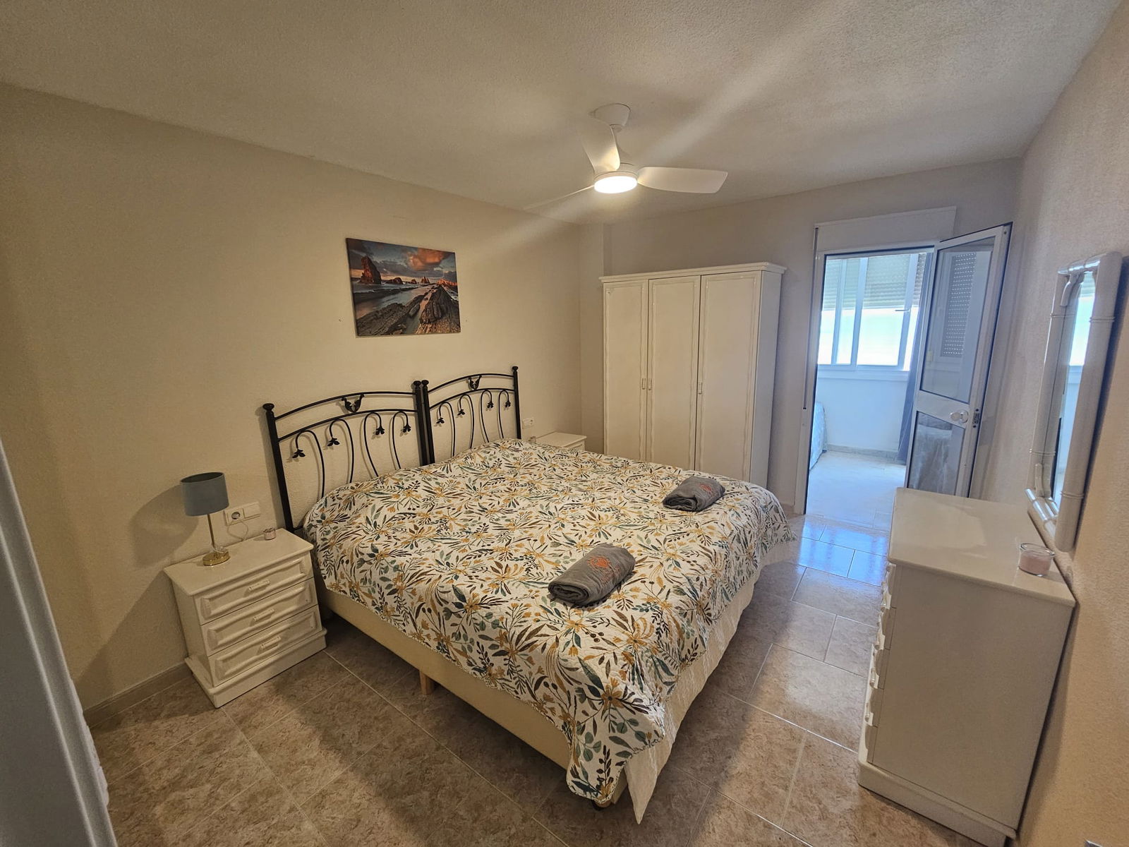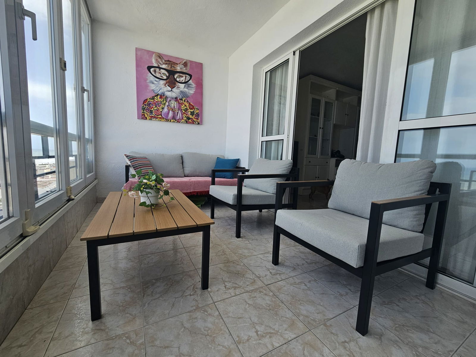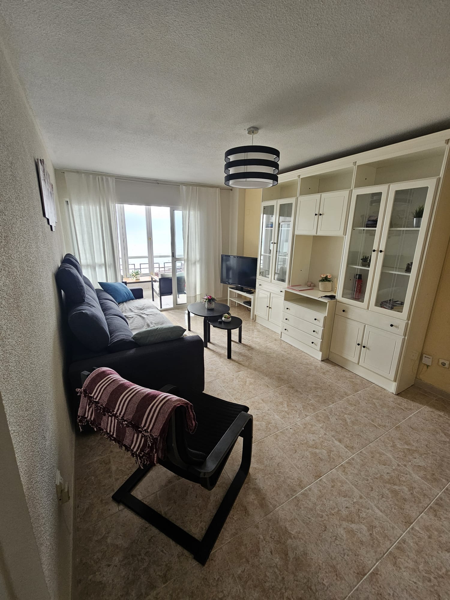 Het appartement is modern ingericht en biedt een warme, mediterrane sfeer waarin je je direct thuis voelt. Dankzij de grote ramen en het open karakter van de woonkamer geniet je de hele dag door van een prachtige natuurlijke lichtinval. De comfortabele zithoek en eethoek vormen een fijne plek om samen te komen, terwijl de volledig uitgeruste keuken alles biedt om een heerlijke maaltijd te bereiden.